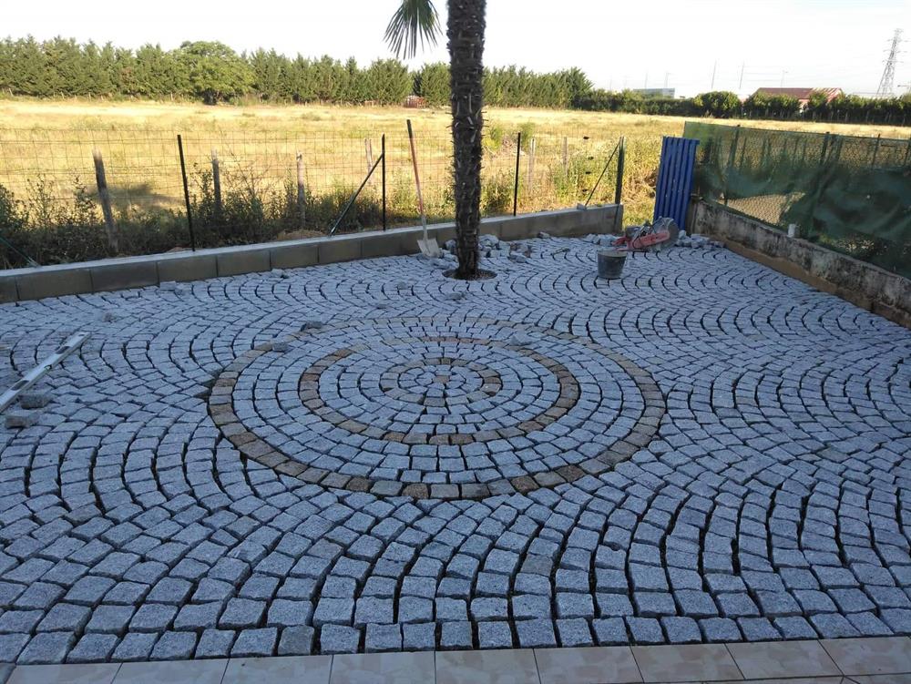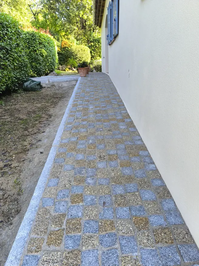 - Pose des pavés en granit selon la forme et le type de pose que vous aurez choisis